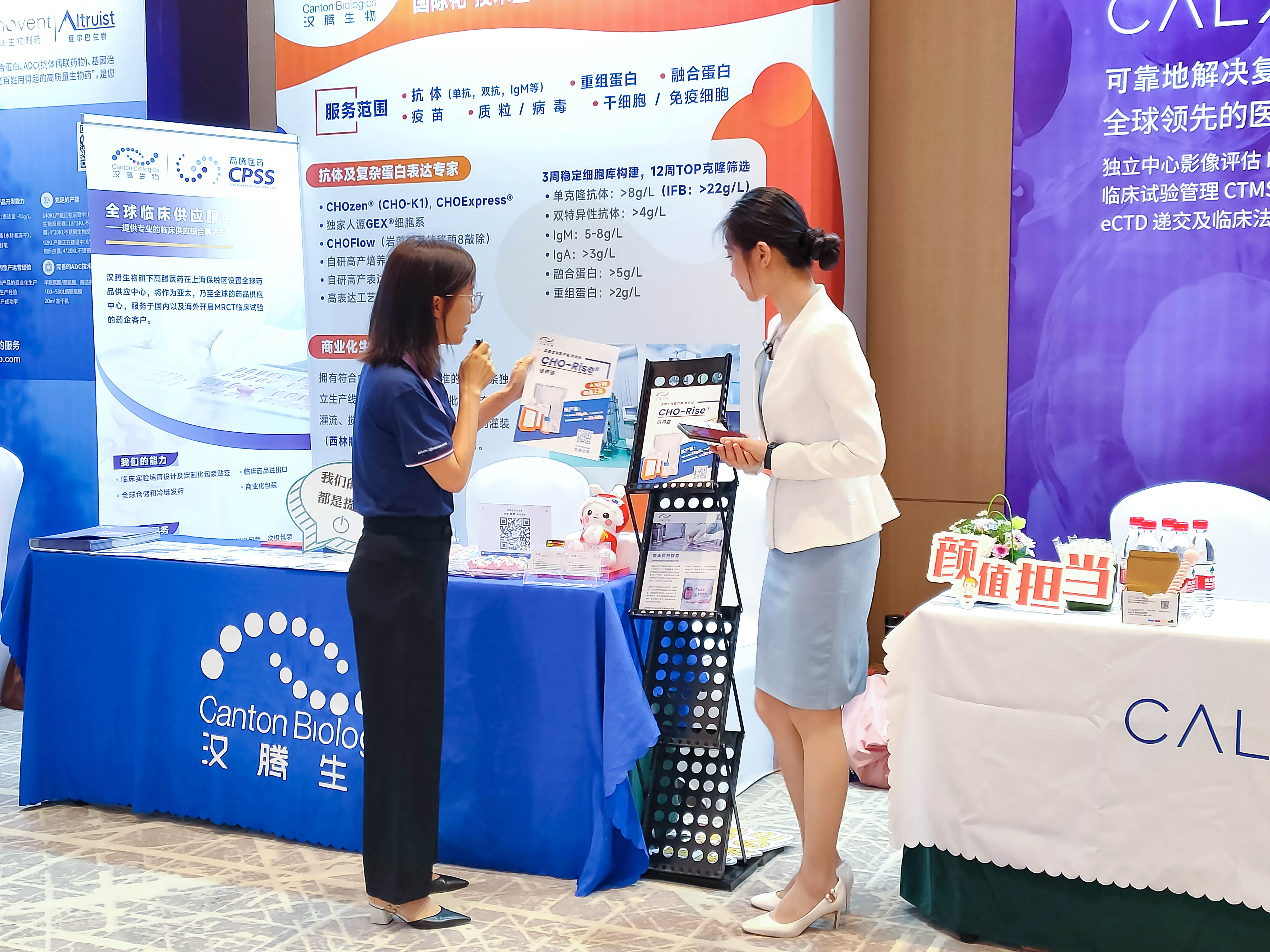 汉腾生物市场负责人谢一接受主办方的直播采访,介绍了汉腾生物新品CHO-Rise®培养基、抗体和复杂蛋白CMC开发优势,以及商业化生产平台和全球临床供应服务。汉腾生物卓越的客户服务能力和硬核实力赢得线上观众的点赞。